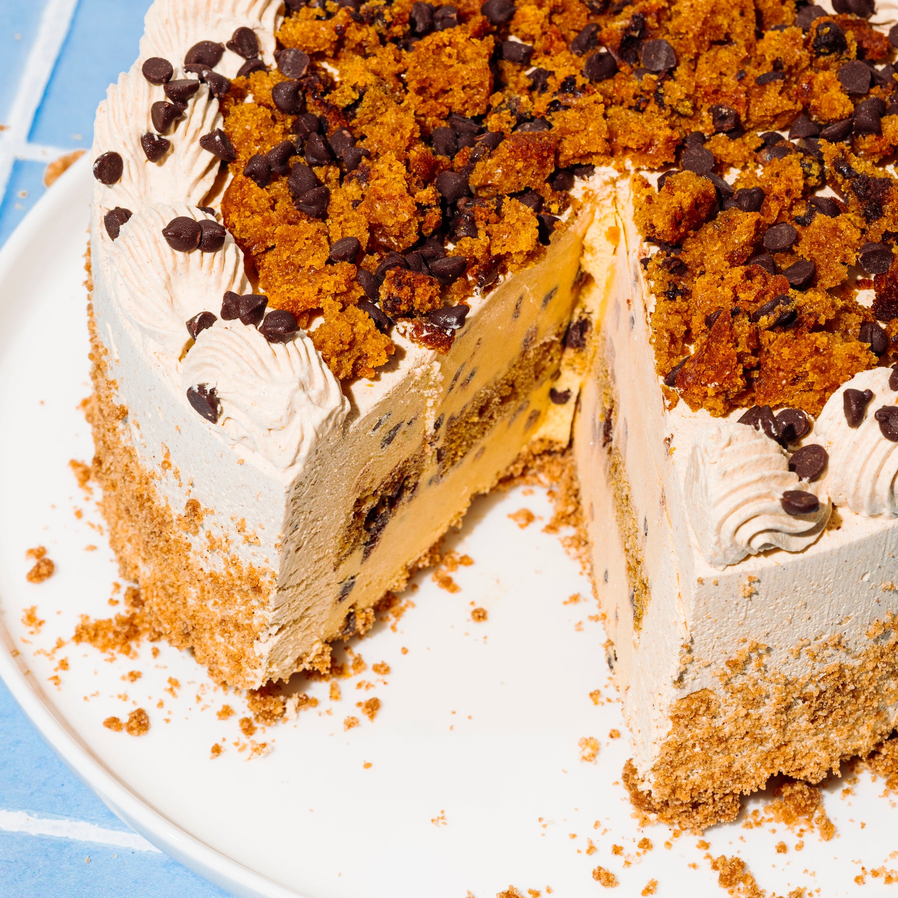 Look, we know that Thanksgiving is known as a holiday full of delicious desserts, so if we want to join your spread we know that we're going to need to BRING IT. So we put our heads down and got to work on the ULTIMATE fall dessert. Say hello to our Pumpkin Chocolate Chip Ice Cream Cake. A spiced graham cracker base layered with our pumpkin ice cream studded with chocolate chips, a thick layer of pumpkin chocolate chip cake, more ice cream, pumpkin-spiced whipped topping, more cake and more chocolate chips. Is it good? How dare you ask such a question.