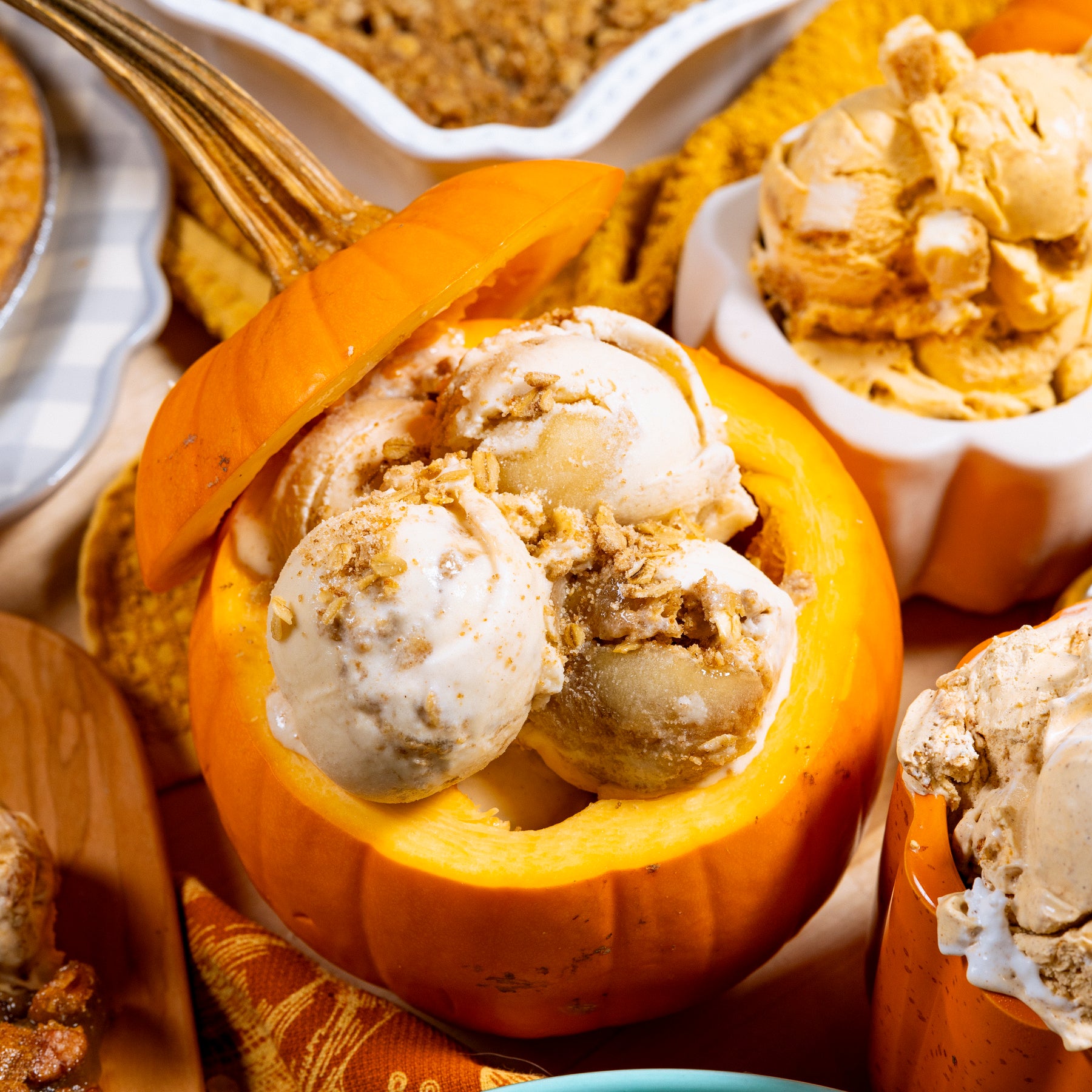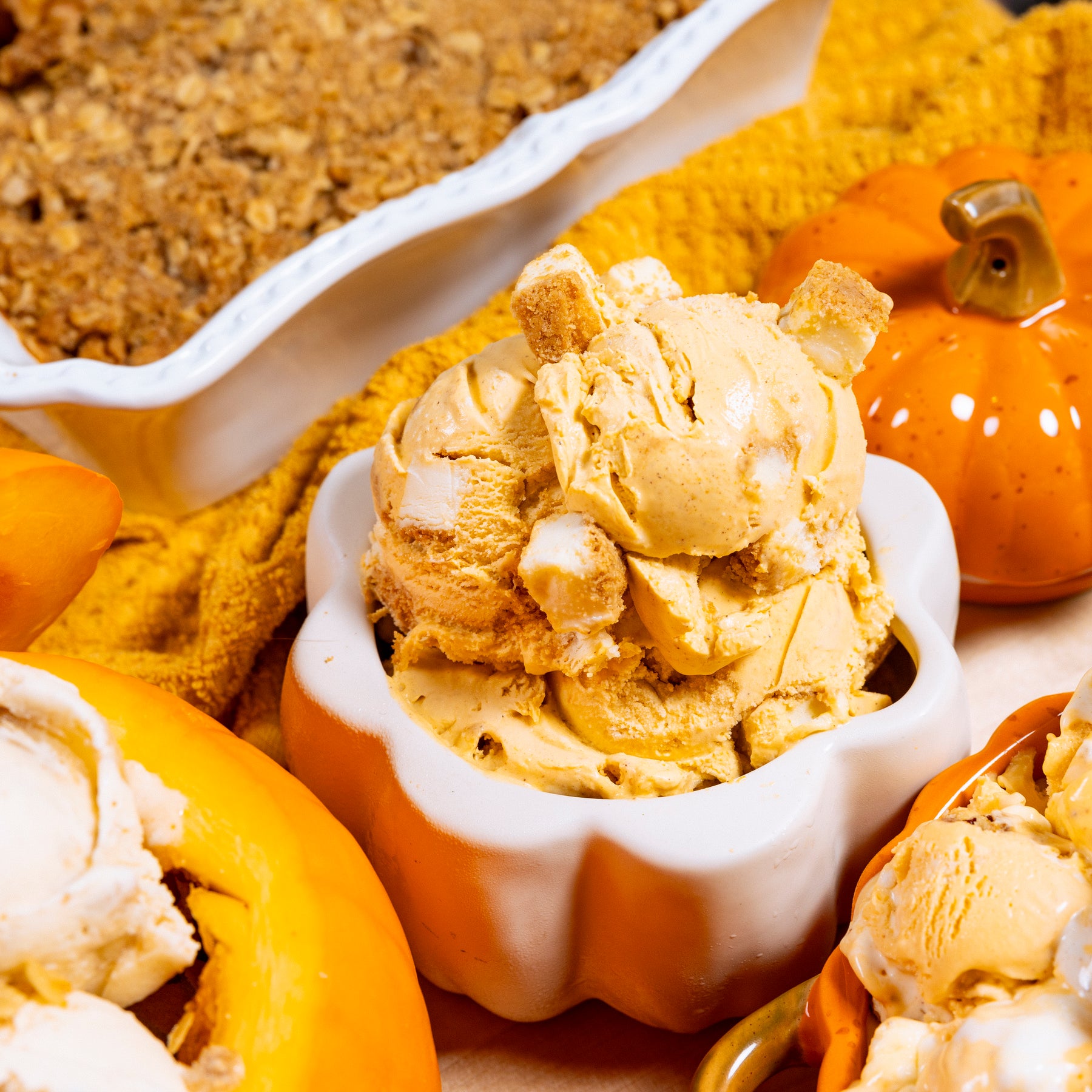 Pumpkin Cheesecake Equal parts real pumpkin and decadent cream cheese churned into one perfectly spiced scoop, with chunks of creamy cheesecake throughout.