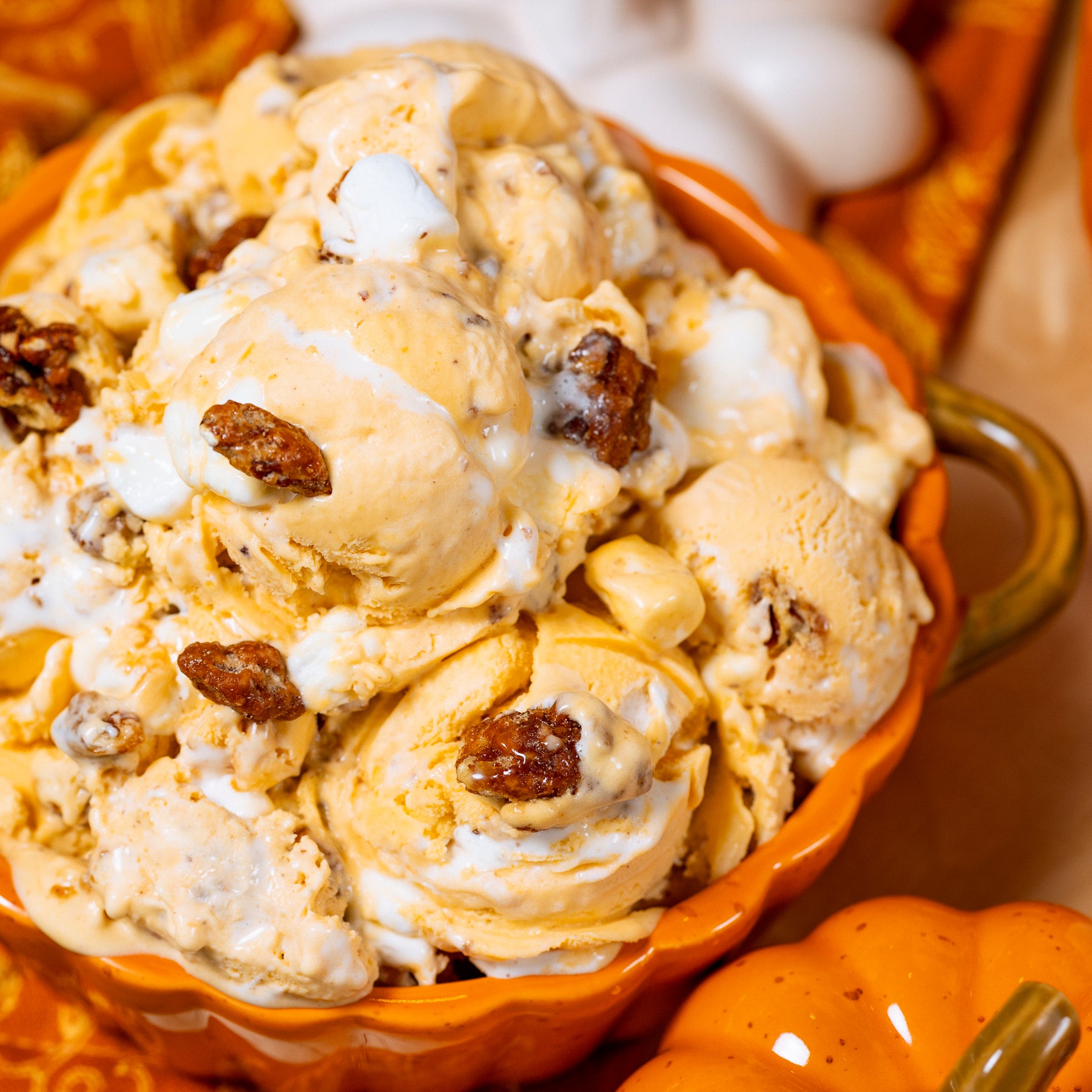 Sweet Potato Casserole Sweet potato ice cream spiced with cinnamon and nutmeg, swirled with candied pecans, sticky marshmallow sauce, and plenty of mini marshmallows.